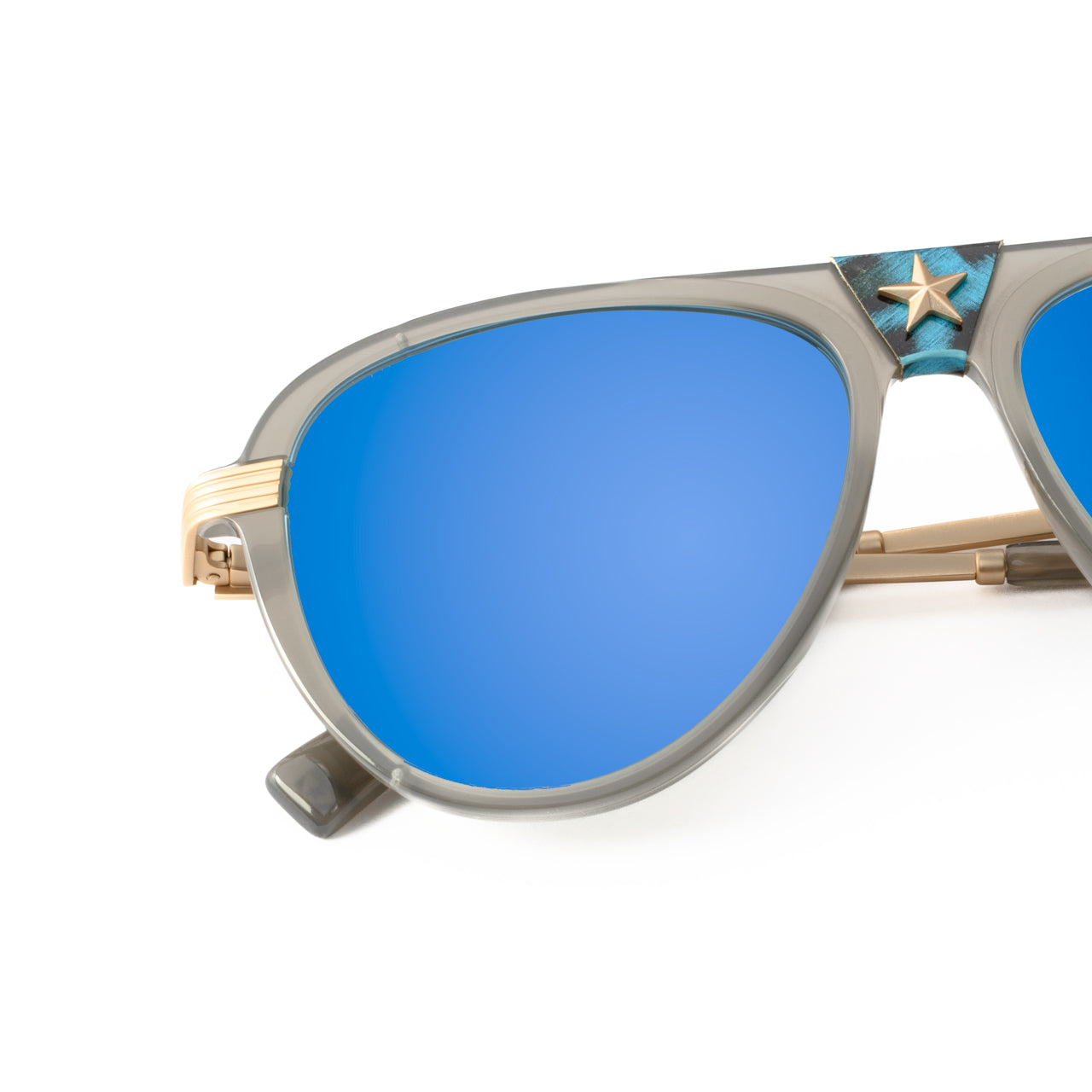 Named after Elton’s early classic Skyline Pigeon, this frame captures the song’s spirit of freedom and flight, with iridescent mirrored lenses that reflect the ever-changing colours of the sky.