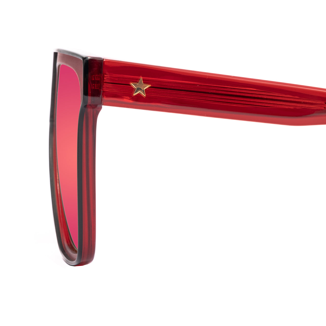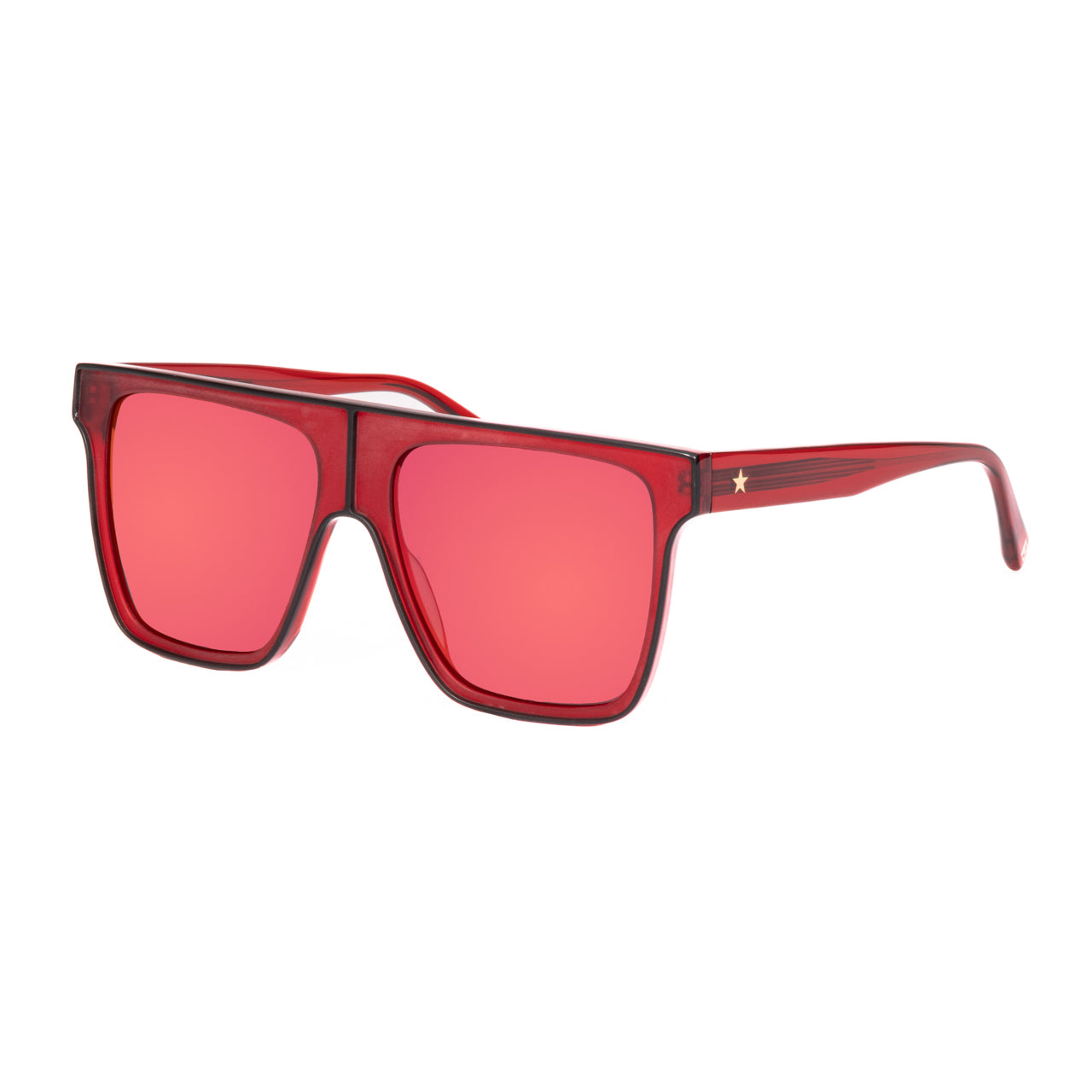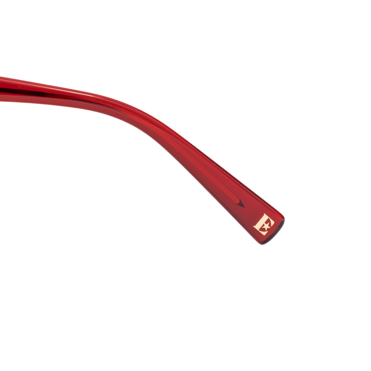 Goliath makes a fashion statement with its bold size and flaming red colour. This matte acetate frame is high profile and the grey polarised lens with red flash mirror takes this look over the top.