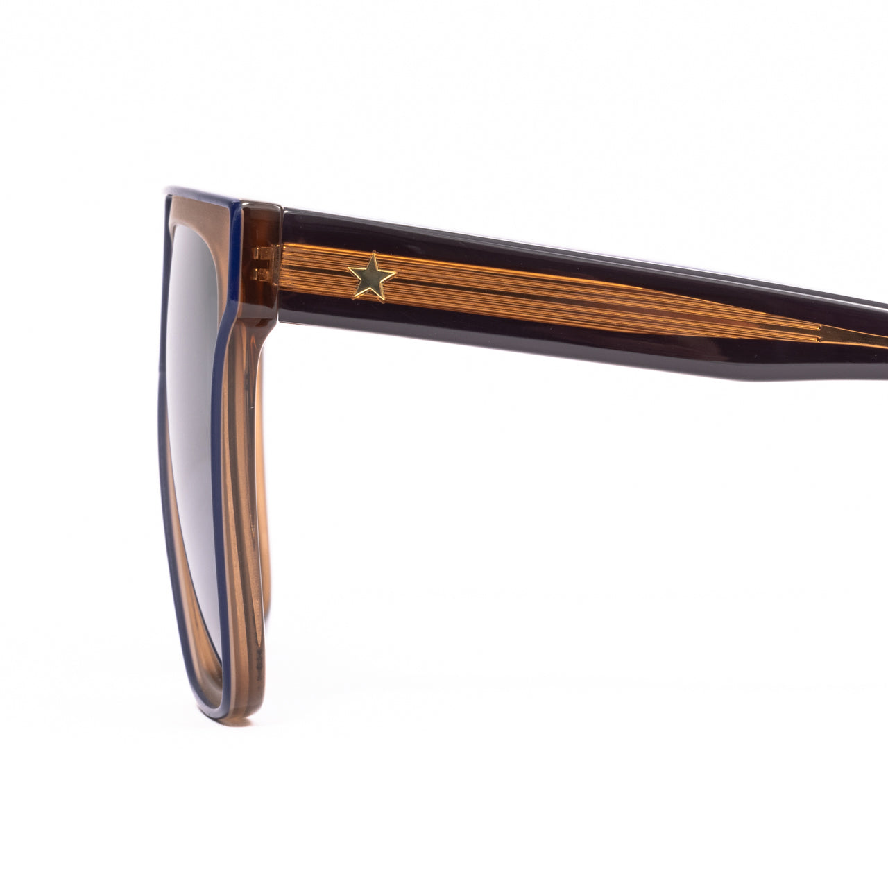 Goliath makes a fashion statement with its bold size and sophisticated beige colour. This matte acetate frame is high profile and the grey polarised lens with silver flash mirror takes this look over the top.