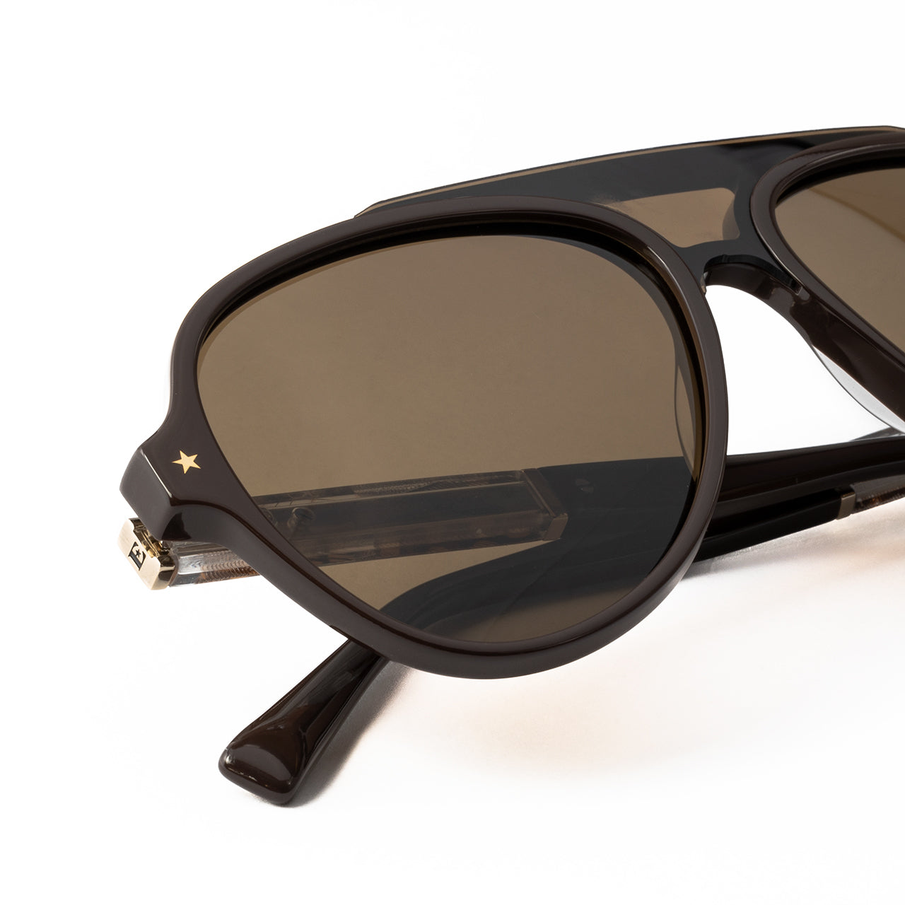 The path to legendary style. Inspired by Elton John's incredible career, this handmade acetate frame takes you on a journey through his iconic styles, from his early days of music to his Rock 'n' Roll era and beyond. With brown frames and brown polarized sun lenses, Journey is both stylish and practical. Designed by Elton John, this frame is the perfect choice for anyone who wants to follow in the footsteps of a legend.