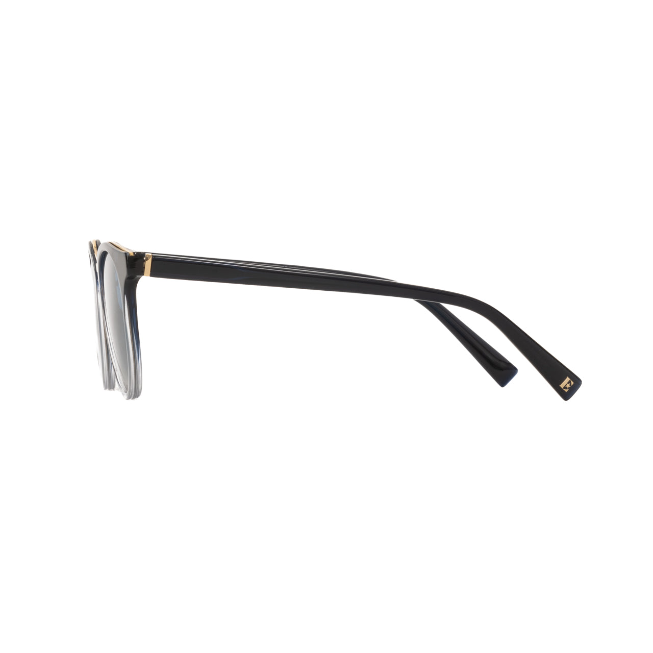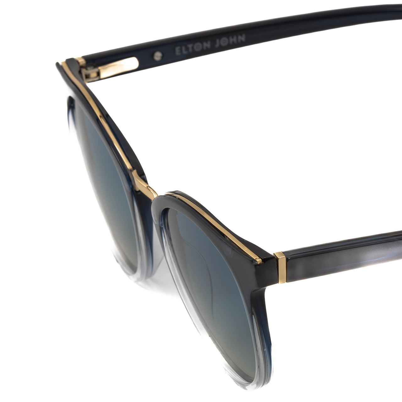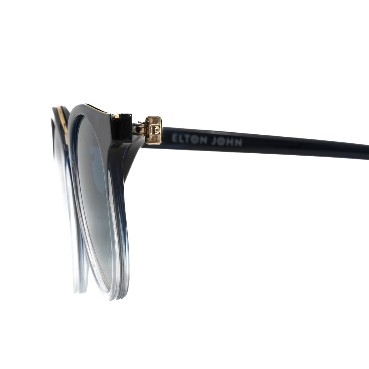 Inspired by the iconic look of Elton’s musical days at the Royal Academy, Prodigy is a dual-material frame made with acetate and a gold metal bridge. The frame is a blue-jeans colour and features a round-eye shape and gold metal trim details. With iconic E star temple tip mark.