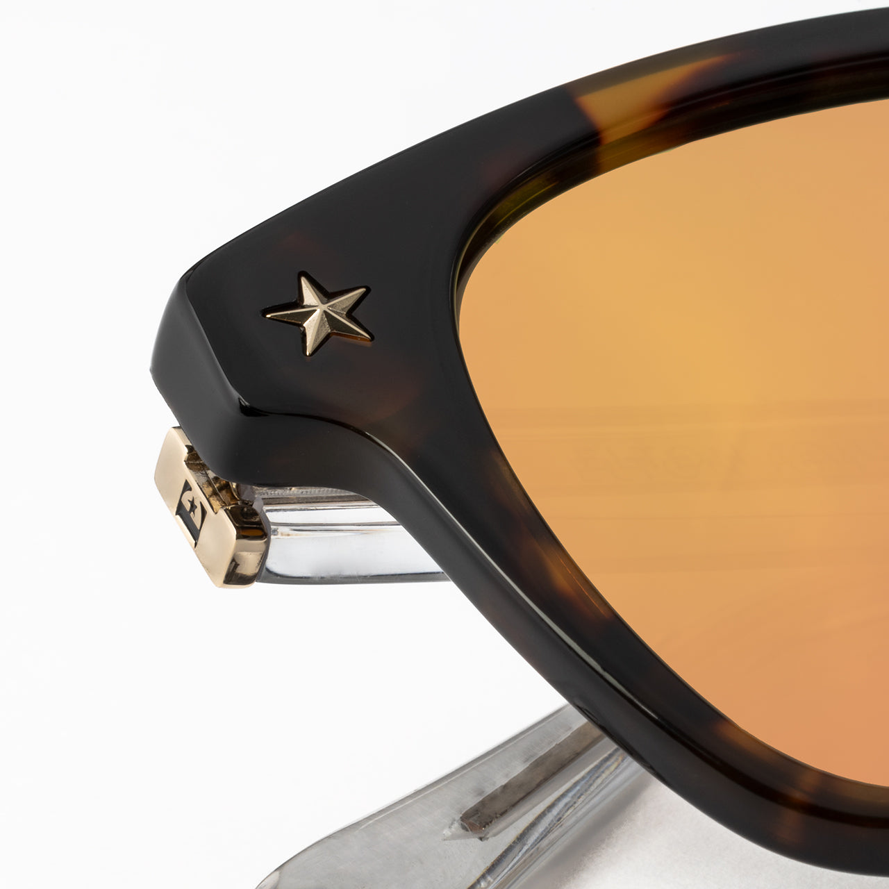 Elton John Eyewear are meticulously crafted to reflect the iconic essence of Elton John himself. Every frame pair bears the E* mark on the temple tip, symbolising unrivaled quality and Elton's personal stamp of approval.